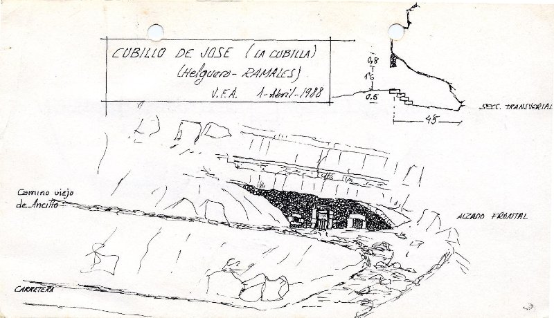 | | | Description de l'entrée, ... | Photographie | Virgilio Fernandez Acebo | 01/04/1988 |  | 1988-04-01_La Cubilla de Helguero_planta.JPG | | Plan détaillé du porche d'entrée. Dessin aimablement communiqué à G. Simonnot par Virgilio. |