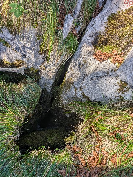 | | | Description de l'entrée, ... | Photographie | Degouve (SCD-GSHP) | 08/11/2025 | .jpg) | Détail entrée 489 | | L'orifice principal de la résurgence temporaire. en crue l'eau sort par là comme le prouve les herbes couchées visible tout autour. |