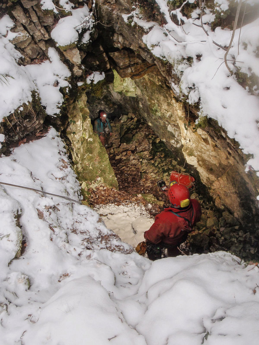 L’entrée du gouffre est creusée dans le calcaire grenu, mais dés la base du ressaut de 4...