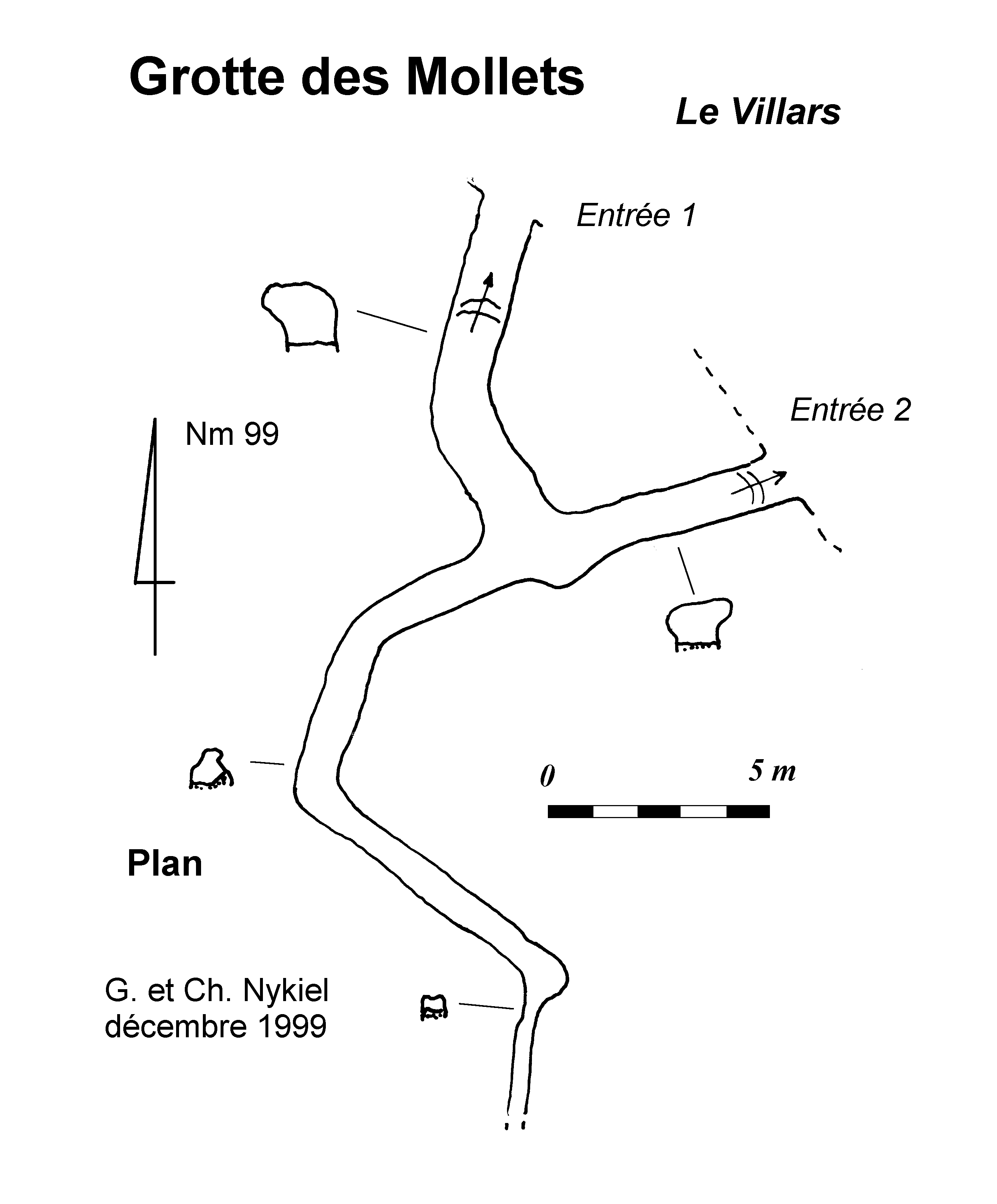 | Situation, accès de l'entrée | Document texte | Guillot-Morel-Simonnot | | Dans Le Villars prendre la route communale menant en bord de Saône par le nord. Longer la voie... | | | Situation, accès de l'entrée | Document texte | Guillot-Morel-Simonnot | | Titre Situation Grotte des Molets Dans Le Villars prendre la route communale menant en bord de Saône par le nord. Longer la voie ferrée et descendre près du lavoir. La grotte des Molets offre deux ouvertures dans la corniche rocheuse, 20m au sud de la source et 10m plus haut. (Carte IGN Top 25 n° : 3027-E) | |