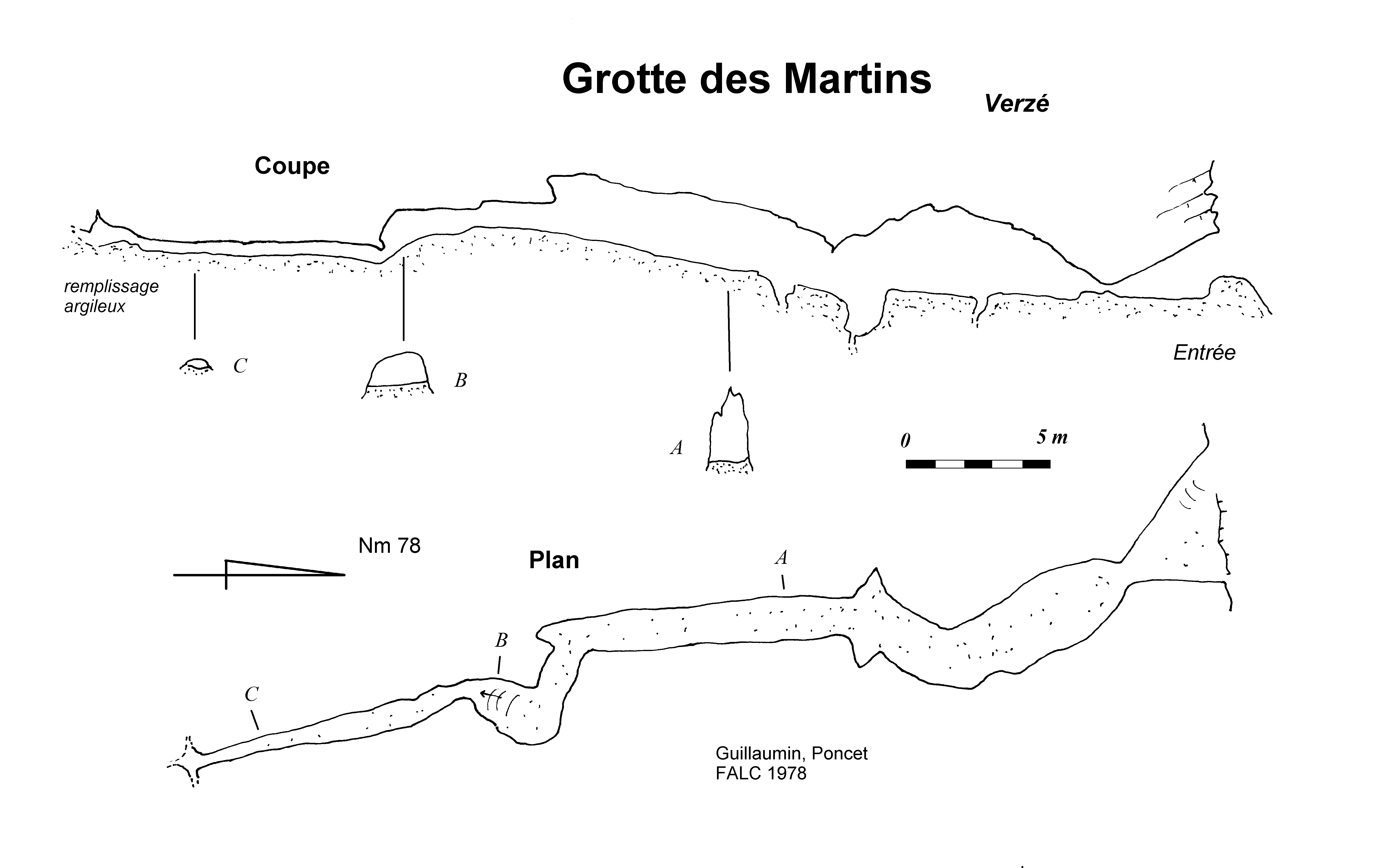 | Situation, accès de l'entrée | Document texte | Guillot-Morel-Simonnot | | Depuis Verzé suivre la D 194 sur 1,3 km. Emprunter le vieux chemin vers le sud qui longe le pré... | | | Situation, accès de l'entrée | Document texte | Guillot-Morel-Simonnot | | Titre Situation Grotte des Martins Depuis Verzé suivre la D 194 sur 1,3 km. Emprunter le vieux chemin vers le sud qui longe le pré et le bois. A 150 m de la route, en hauteur dans le bois on distingue la petite barre rocheuse de la Butte de la Follatière où s'ouvre la grotte. (Carte IGN Top 25 n° : 3028-O) | |