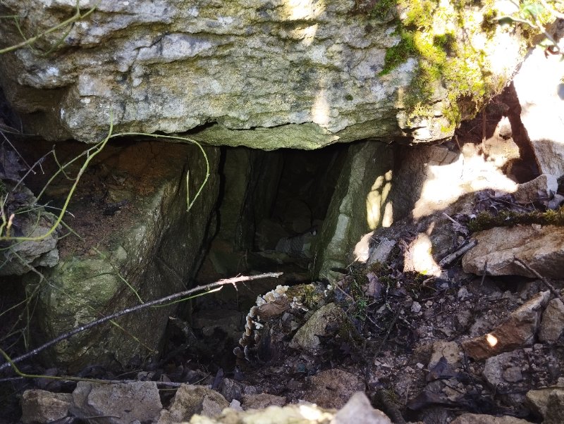 | Situation, accès de l'entrée | Photographie | A. Bloch | 24/02/2026 |  | Carrière-décharge (vue d'ensemble) | | La grotte est située à l'extrémité N de la carrière, contre le front de taille et à 2m sous la surface. |