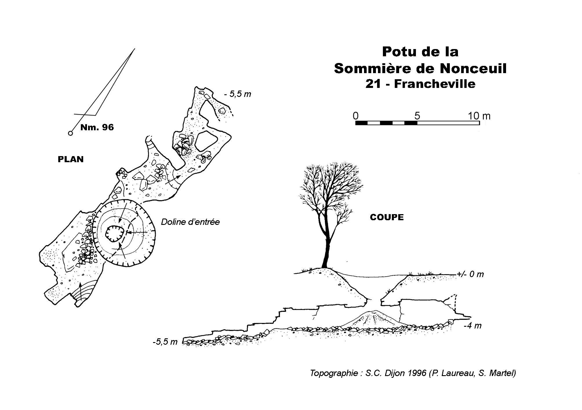 | Situation, accès de l'entrée | Document texte | S.C.Dijon | 01/01/2010 | La cavité s’ouvre à une cinquantaine de mètres à droite de la grande sommière de Nonceuil... | | | Situation, accès de l'entrée | Document texte | S.C.Dijon | 01/01/2010 | Titre Potu de la Sommière de Nonceuil : Situation