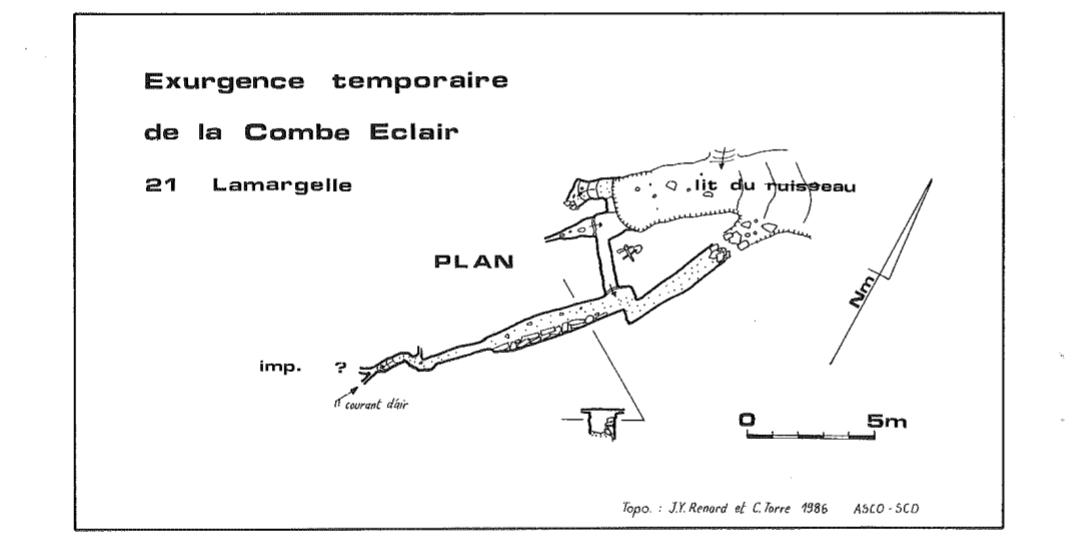 | Situation, accès de l'entrée | Document texte | S.C.Dijon | 01/01/2010 | Cette résurgence temporaire liée probablement au cours d’eau souterrain rencontré dans la... | | | Situation, accès de l'entrée | Document texte | S.C.Dijon | 01/01/2010 | Titre Exsurgence temporaire de la Combe Eclair : Situation Cette résurgence temporaire liée probablement au cours d’eau souterrain rencontré dans la grotte Michel, s’ouvre au fond d’une petite reculée en rive gauche de la combe Saint-Seine. | |