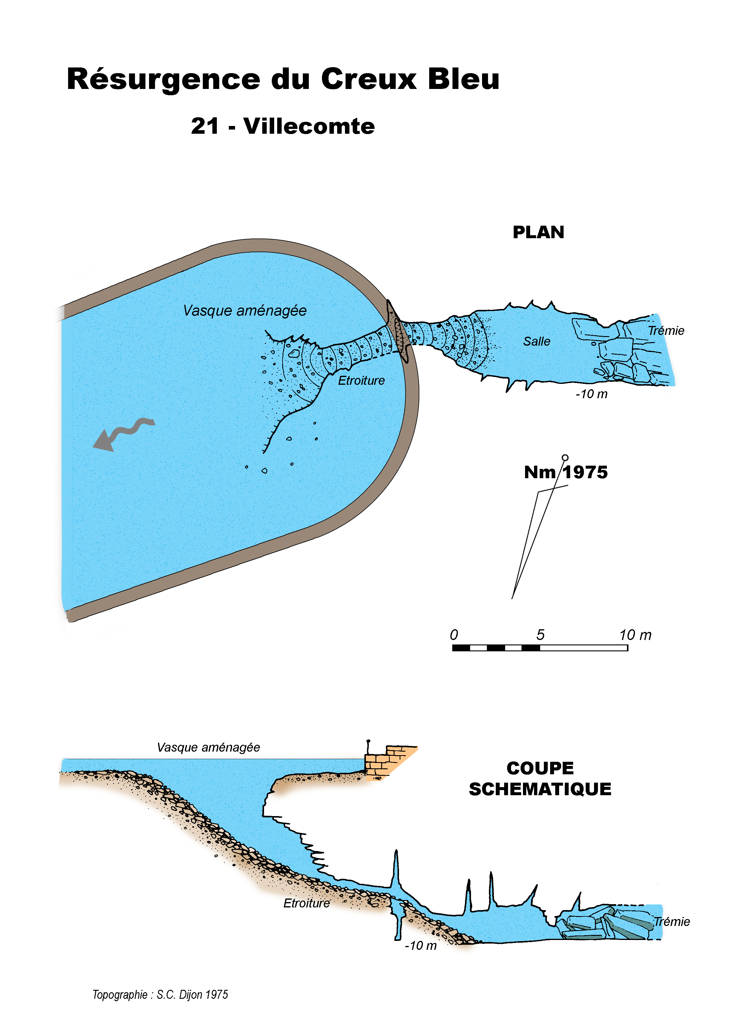 | | | Plan Coupe | Topographie | S.C.Dijon | 31/12/0975 |  | Topo-Creux-Bleu-1975 | | Extrait de Sous le Plancher - A.S.E. n° 10, 1995, p. 14 |