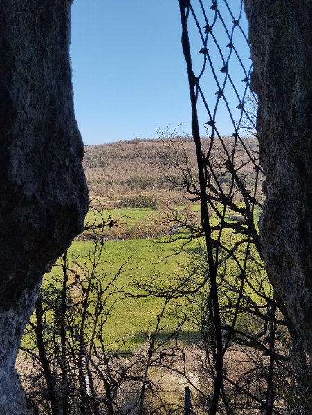 Résumé Grotte à 2 entrées (dont un P.7). Située presque au niveau de la ligne électrique, dans la falaise au-dessus de la voie ferrée.