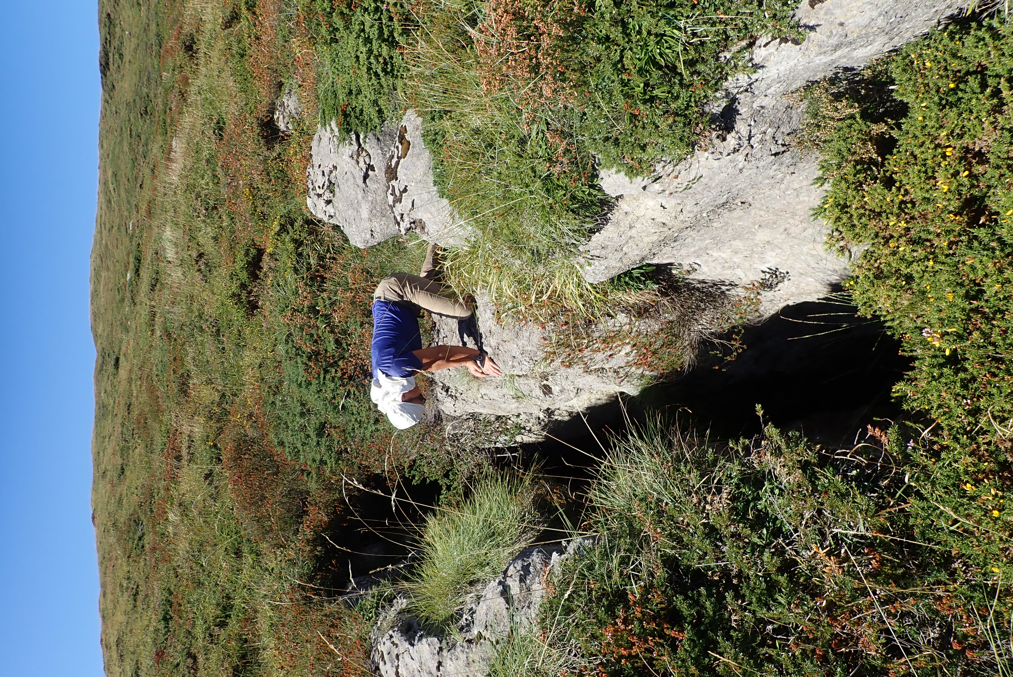 3500 (GEE) : Cueva T 11. Description : Bien que située sur une strate plus basse, la torca T11 offre au départ beaucoup de similitude avec sa voisine la torca de Lastrias n°1 (n°529). Comme cette dernière, l'entrée et la galerie qui lui fait suite sont creusées le long d'une diaclase bien marquée que l'on peut suivre en surface sur plusieurs dizaines de mètres. De la même façon, un ressaut de 5 m, correspondant à l'épaisseur du banc calcaire, recoupe une galerie qui suit le pendage (environ 11 °). Celle-ci, de taille modeste sur les trente premiers mètres, devient plus confortable ensuite (1,5 x 2 m en moyenne). A 80 m de l'entrée (-20 m) une trémie barre presque entièrement la galerie et provient d'une petite dépression située à l'aplomb. A cet endroit, la surface est encore très proche, une dizaine de mètres tout au plus. Après avoir contourné le talus d'éboulis par la gauche, la pente s'accentue et le conduit s'enfonce dans un niveau plus gréseux puis, au contact d'un petit banc calcaire sous-jacent, il plonge dans un puits de 5 m, suivi de près par un autre de 9 m creusé cette fois-ci dans un calcaire plus gréseux. Entre les 2 puits et en poursuivant dans l'axe de la galerie, un passage étroit suivi de deux ressauts mène à une galerie argileuse bouchée par des blocs et un épais remplissage morainique. Au bas du P.9, les parois se resserrent et après un passage étroit entre des blocs instables on parvient au sommet d'un dernier petit puits de 5 m. Au bas le conduit qui entaille un banc gréseux est confortable mais cela ne dure pas et 15 mètres plus loin il est complètement colmaté par un remplissage sableux. Un petit actif, qui était visible dans le P.9, réapparaît dans l'amont de ce conduit avant de s'infiltrer entre les blocs et le sable (-52 m). Un courant d'air peu marqué a été observé à quelques reprises dans la première partie de la cavité. Il pourrait simplement s'agir d'une circulation d'air entre l'entrée et la trémie de -20 m. A -15 m, plusieurs ossements et bois de cervidés sont disséminés dans les blocs et le lit du ruisseau temporaire. Certains sont enchâssés dans le remplissage. Développement : 155 m ; dénivellation : -52 m Niveau géologique : 13 La cueva se développe dans des strates situées en-dessous de celles dans lesquelles se développent les cuevas de Lastrias 1 et la perte des Plastiques (sumidero 2 de la Lunada). Ces niveaux, nettement plus gréseux semblent moins propices à des développements importants. Historique des explorations : La cavité a été découverte et explorée par le G. E. Edelweiss de Burgos dans les années 85. En 2022 et 2023, le SCD la visite à nouveau sans découvrir le moindre prolongement et dresse la topographie (P. et S. Degouve, B. Pernot). Topographie : S.C. Dijon 2023 Résurgence présumée : Gándara ?