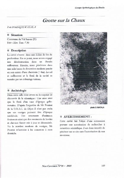 Bulletin "Nos cavernes" de 2005 (n° 18) du Groupe Spéléologique du Doubs.